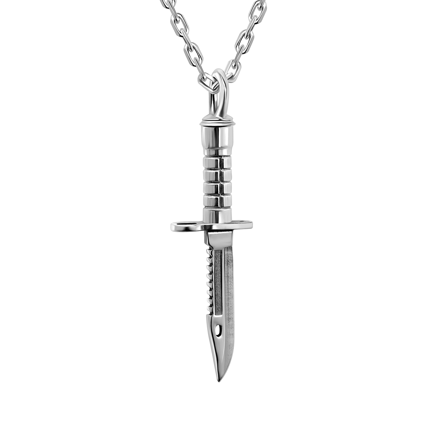 "Подвеска [BAYONET] – символ выбора и осознанности. Байонет – это инструмент не только силы, но и стратегии, напоминая, что не каждая битва требует участия. Власть над ситуацией часто заключается не в ударе, а в способности вовремя удержаться от него. Как говорил Сунь-цзы: «Высшее искусство войны – это подчинить врага без сражения». Этот аксессуар напоминает, что истинная сила кроется в умении выбирать свои битвы, в решительности действовать и в мудрости отступить, когда это приведёт к большему триумфу."